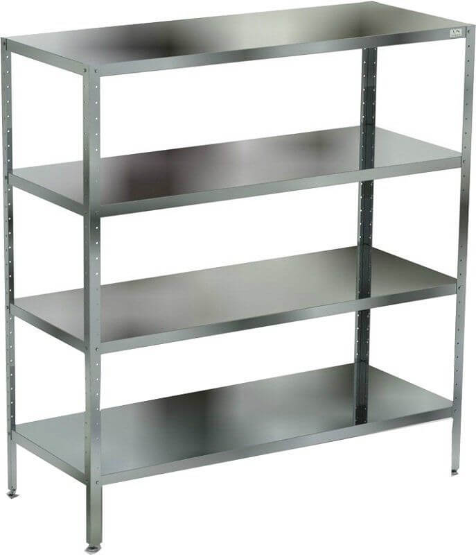 полки - сплошные; 4 полки; каркас - нерж. сталь; полки - нерж. сталь; ширина - 1000 мм; глубина - 300 мм; высота - 1600 |