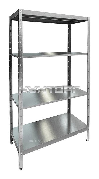 полки - сплошные; 4 полки; от 50 до 100 кг; каркас - оцинкованная сталь; полки - нерж. сталь; ширина - 1100 мм; глубина |