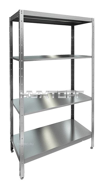 полки - сплошные; 4 полки; от 50 до 100 кг; каркас - оцинкованная сталь; полки - нерж. сталь; ширина - 1800 мм; глубина |