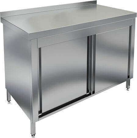 закрытый, рабочий; пристенный; борт; полка; столешница - сталь; двери-купе; ширина - 1300 мм; глубина - 700 мм |