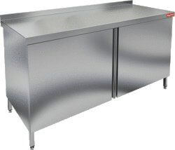 закрытый, рабочий; пристенный; борт; полка; столешница - сталь; распашные двери; ширина - 1600 мм; глубина - 700 мм |
