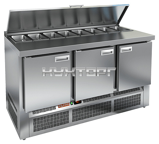 для салатов; от 2 до 10 °С; распашные; GN 1/3; вместимость - 8 гастроемкостей; 3 двери |