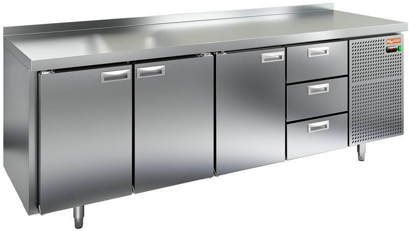 от -2 до 10 °С; нерж. сталь; 3 двери; 3 ящика; с бортом; 2280 мм; 600 мм |
