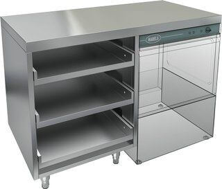 Стол открытый HICOLD НБМКБКП-12/7П предназначен для комплектации барных стоек, оборудован крылом под посудомоечную машину и тремя полками для корзин с бокалами.