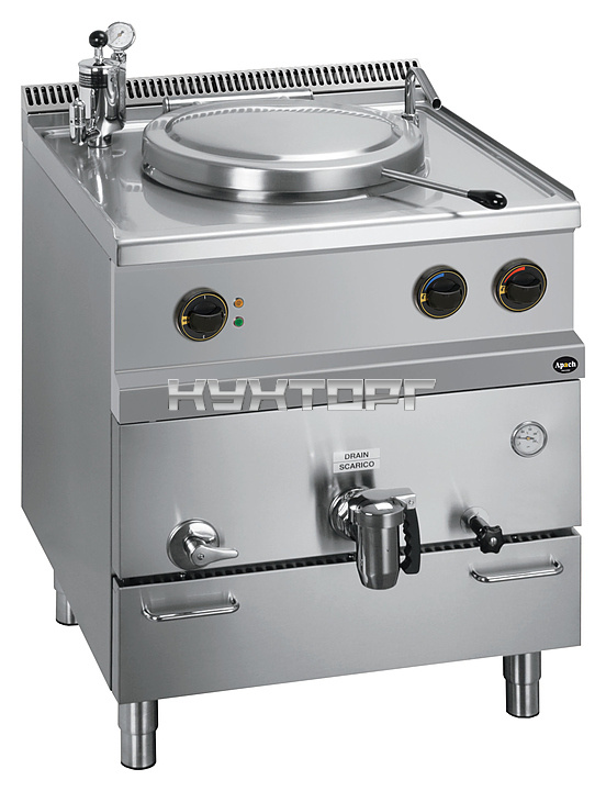 Варочный котел Apach APKE-77 предназначен для приготовления первых блюд, варки овощей и кипячения больших объемов жидкости на предприятиях общественного питания и торговли. Модель оснащена кранами для залива и слива воды, крышкой с системой балансировки и ручкой и регулируемыми ножками. Бак выполнен из нержавеющей стали AISI 304, дно бака - из нержавеющей стали AISI 316.