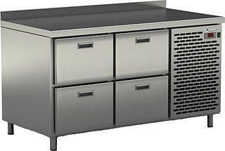 хол. агрегат сбоку; от 1 до 10 °С; рабочая поверхность - нерж. сталь; гастронормированный; 4 ящика; с бортом; ширина - |