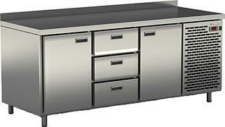 хол. агрегат сбоку; от 1 до 10 °С; рабочая поверхность - нерж. сталь; 2 двери; 3 ящика; с бортом; ширина - 1838 мм; |
