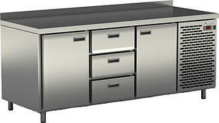 хол. агрегат сбоку; от 1 до 10 °С; рабочая поверхность - нерж. сталь; гастронормированный; 2 двери; 3 ящика; с бортом; |
