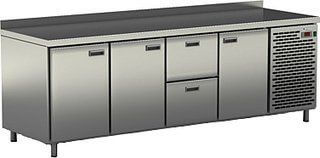 хол. агрегат сбоку; от 1 до 10 °С; рабочая поверхность - нерж. сталь; 3 двери; 2 ящика; с бортом; ширина - 2283 мм; |